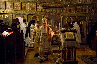 Его Высокопреосвященству сослужили клирики обители преподобного Сергия и Стефано-Махрищского монастыря, а также клирик храма иконы Божией Матери «Всех скорбящих Радость» на Большой Ордынке игумен Филарет (Тамбовский).