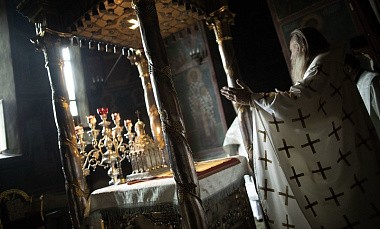 В Троицком соборе обители у мощей наставника великого князя – преподобного Сергия Радонежского – Его Высокопреосвященству сослужила братия монастыря в священном сане.