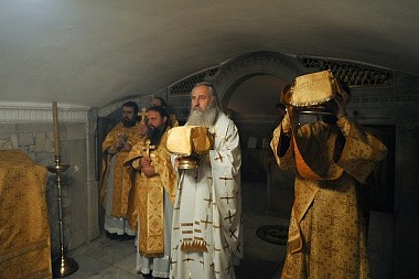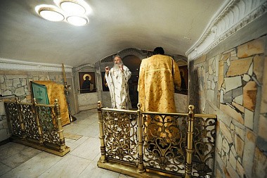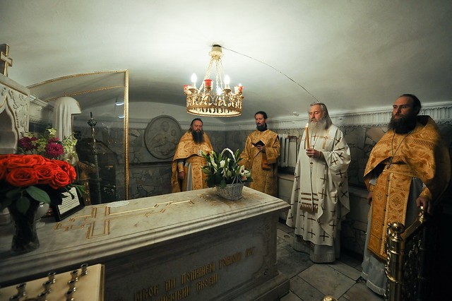 9 сентября 2019 года, в день тезоименитства приснопоминаемого Святейшего Патриарха Московского и всея Руси Пимена, председатель Синодального отдела по монастырям и монашеству архиепископ Каширский Феогност совершил Божественную литургию в крипте Успенского собора Свято-Троицкой Сергиевой лавры.