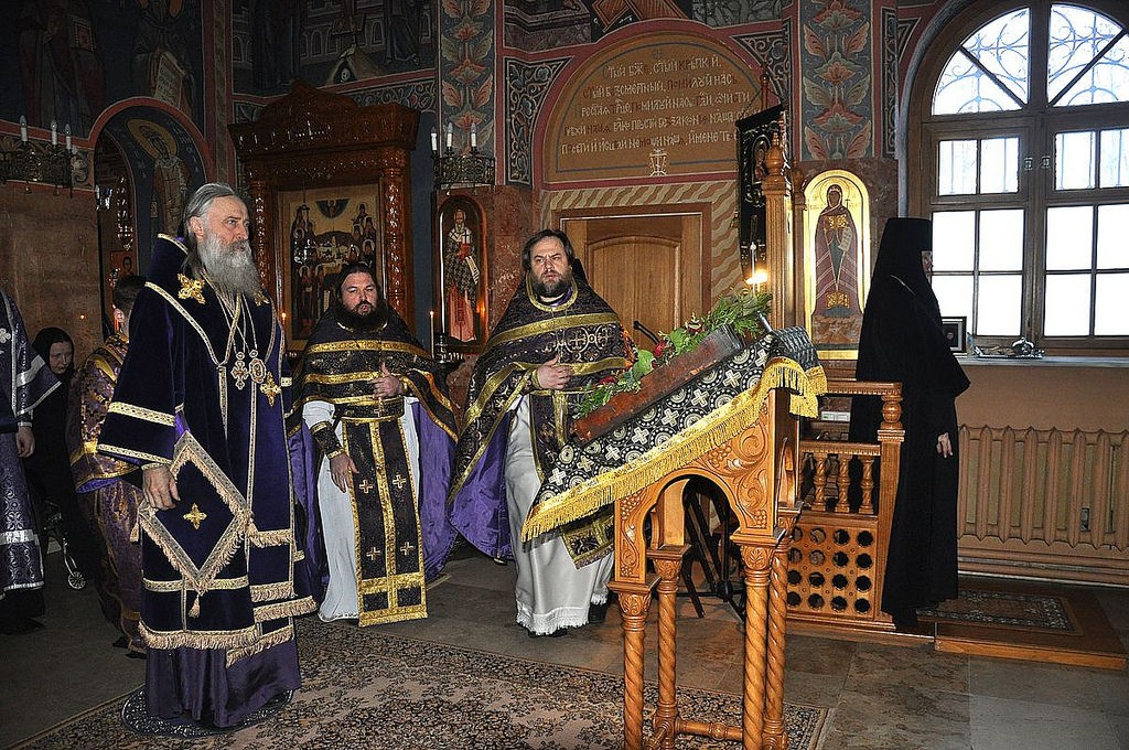 Были совершены часы, изобразительны и вечерня с Литургией. В конце изобразительных по Уставу было совершено поклонение Кресту, после чего Владыка внес Крест в алтарь в знак окончания Крестопоклонной седмицы.