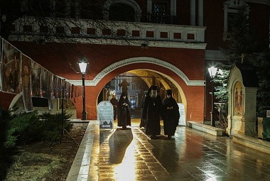 В приделе сщмч. Киприана и мчц. Иустины монастырского собора Его Высокопреосвященству сослужили клирики Зачатьевской обители.