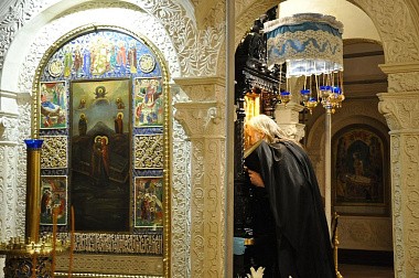 Божественную литургию в монастырском храме Сошествия Святого Духа совершил председатель Синодального отдела по монастырям и монашеству, наместник Свято-Троицкой Сергиевой лавры архиепископ Сергиево-Посадский Феогност.