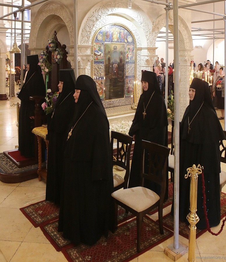 За Божественной литургией молились: заместитель председателя Синодального отдела по монастырям и монашеству, настоятельница Зачатьевского ставропигиального женского монастыря игумения Иулиания с сестрами; настоятельница Богородице-Рождественского ставропигиального женского монастыря игумения Викторина (Перминова); настоятельница Борисоглебского Аносина ставропигиального женского монастыря игумения Мария (Солодовникова); настоятельница ставропигиального женского монастыря Марфо-Мариинская обитель милосердия игумения Елисавета (Позднякова); настоятельница Свято-Троицкого Александро-Невского ставропигиального женского монастыря в с. Акатове игумения Антония (Минина); настоятельница Никольского Шостьенского ставропигиального женского монастыря игумения Неонилла (Фролова); многочисленные прихожане и паломники обители.