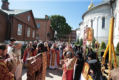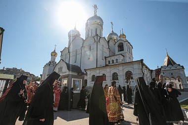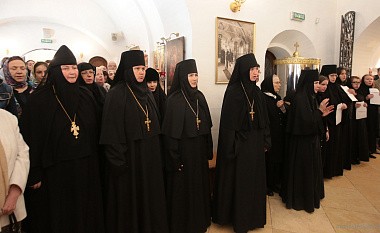 В этот день Божественную литургию в Богородице-Рождественском соборе монастыря возглавил председатель Синодального отдела по монастырям и монашеству архиепископ Сергиево-Посадский Феогност.