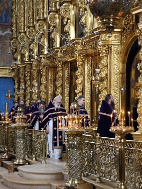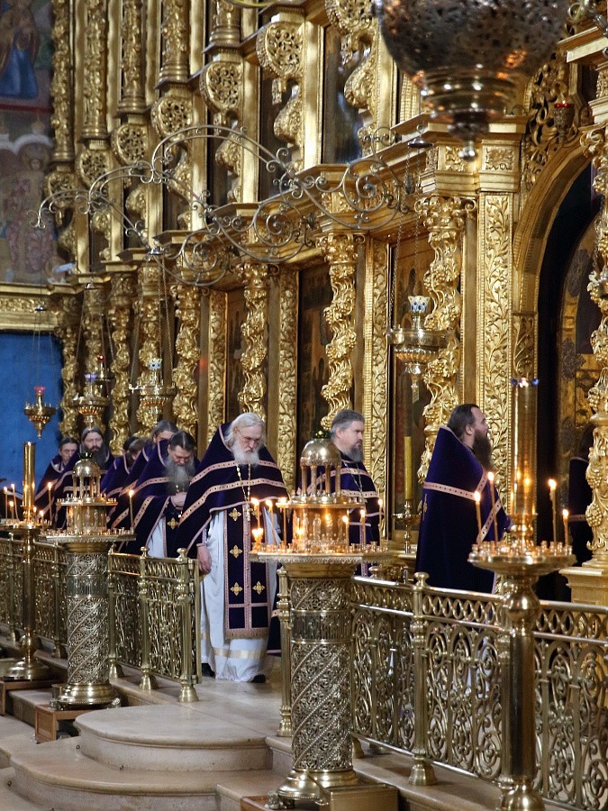 Великопостные богослужебные песнопения исполнил лаврский хор под управлением регента архимандрита Глеба (Кожевникова).
