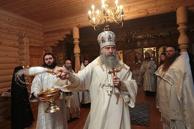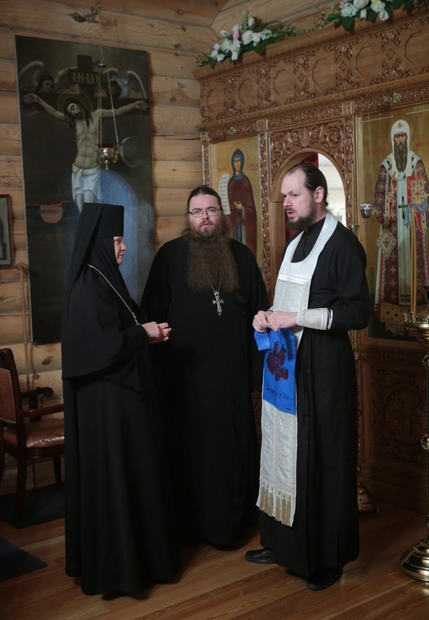 Всех вас поздравляю с праздником. Сегодня по благословению Святейшего Патриарха Кирилла совершено великое освящение этого дивного храма. Матушка игумения, радуемся за Вас. Когда-то здесь была трапезная, а сегодня здесь совершается трапеза духовная. Этот храм как малая община, где можно во всякое время без лишних формальностей собраться и помолиться Господу... Всех вас благодарим за святые молитвы. Причастников поздравляем с принятием Святых Христовых Таин».