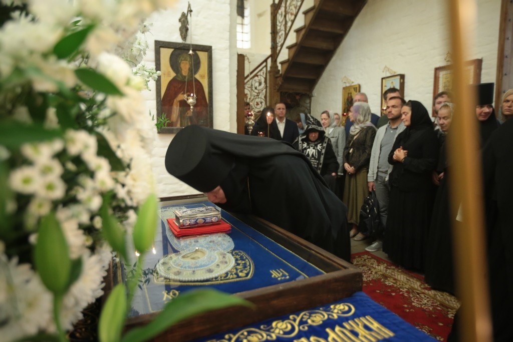 За богослужением молились настоятельница монастыря игумения Викторина (Перминова), заместитель председателя Синодального отдела по монастырям и монашеству, настоятельница Зачатьевского ставропигиального женского монастыря игумения Иулиания (Каледа), заместитель министра финансов Российской Федерации А.Ю. Иванов, главный редактор сайта Синодального отдела по монастырям и монашеству «Монастырский вестник» Е.П. Орлова, насельницы и прихожане обители.