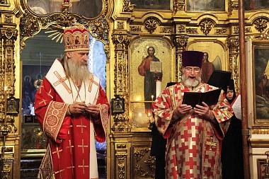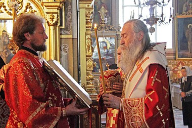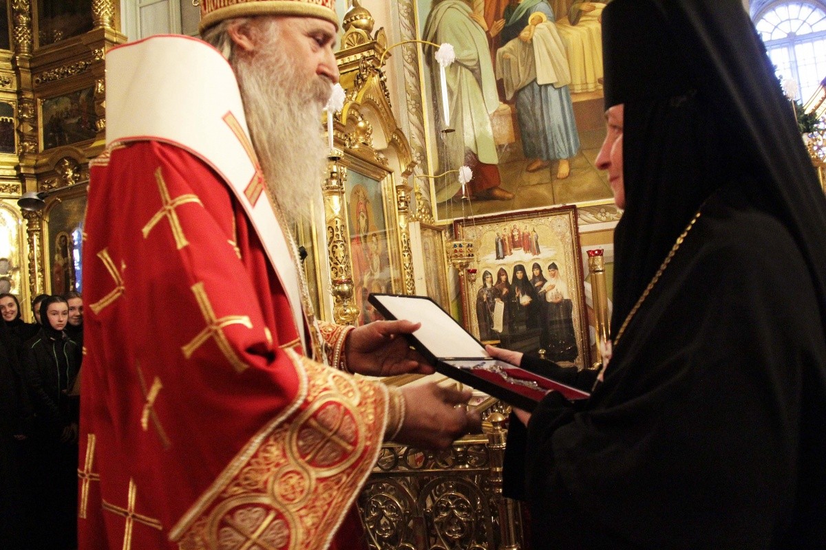 В завершение Его Высокопреосвященство поздравил матушку игумению с праздником от себя лично и от имени братии Троице-Сергиевой лавры и подарил ей памятный крест с украшениями.