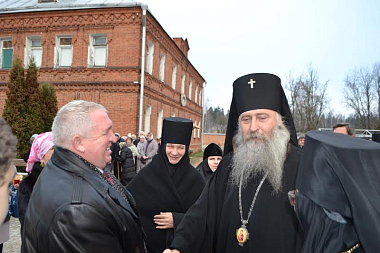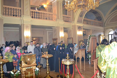 За богослужением молились: Заместитель Председателя Синодального отдела по монастырям и монашеству, настоятельница Зачатьевского ставропигиальнго женского монастыря игумения Иулиания (Каледа); настоятельница Троице-Одигитриевского ставропигиального женского монастыря Зосимова пустынь игумения Фаина (Кулешова) с сестрами обители; глава сельского поселения Новофедоровское города Москвы Г.П. Пензов; гости и прихожане обители.