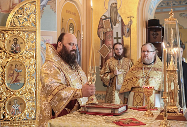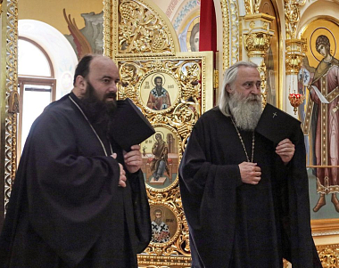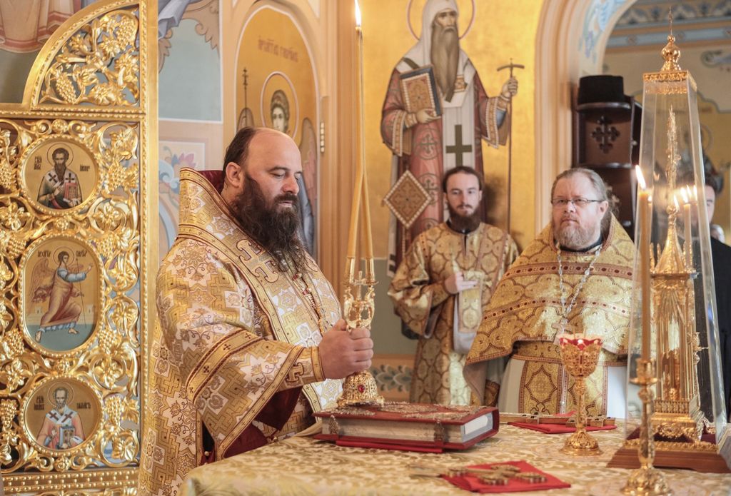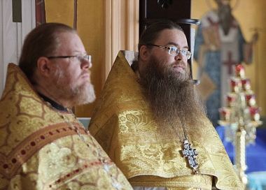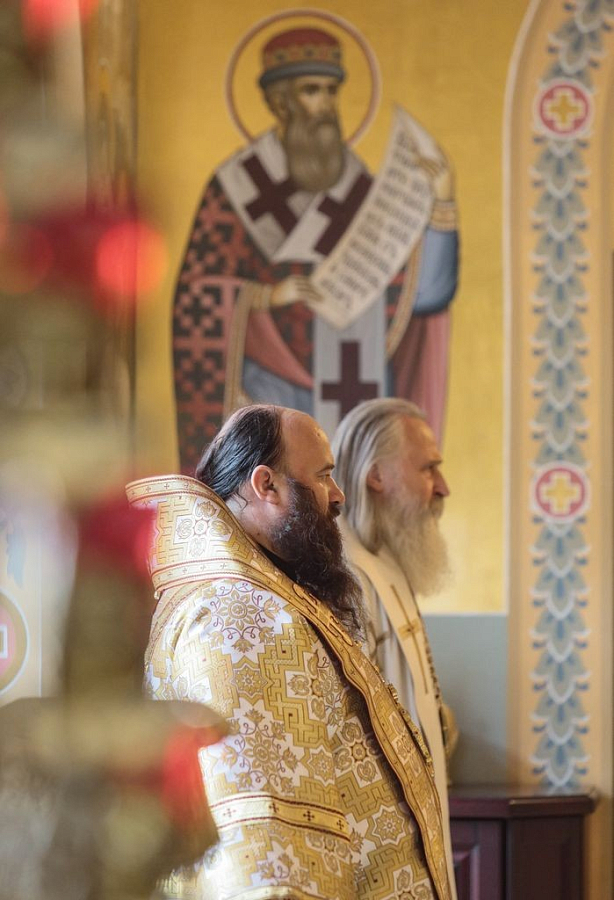 Его Высокопреосвященству сослужили епископ Сергиево-Посадский Парамон (Голубка), наместник Свято-Троицкой Сергиевой лавры, викарий Святейшего Патриарха Московского и всея Руси, и настоятель подворья, заместитель председателя СОММ архимандрит Стефан (Тараканов).
