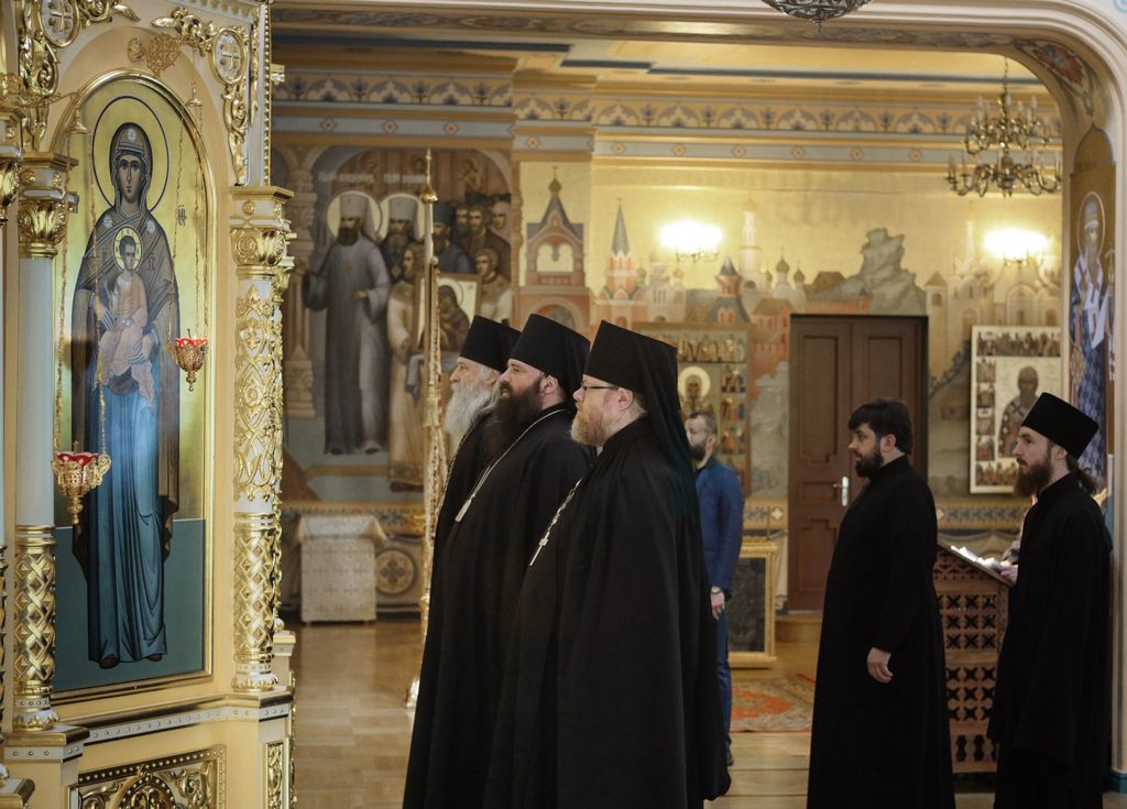 21 июня 2020 года, в Неделю 2-ю по Пятидесятнице, Всех святых, в земле Русской просиявших, и память всех преподобных и богоносных отцов, во Святой Горе Афонской просиявших (переходящее празднование), председатель Синодального отдела по монастырям и монашеству архиепископ Каширский Феогност возглавил служение Божественной литургии в домовом храме в честь святителей Московских в Митрополичьих палатах московского Троицкого подворья Свято-Троицкой Сергиевой лавры.