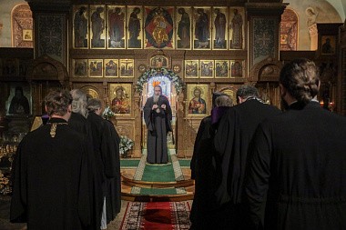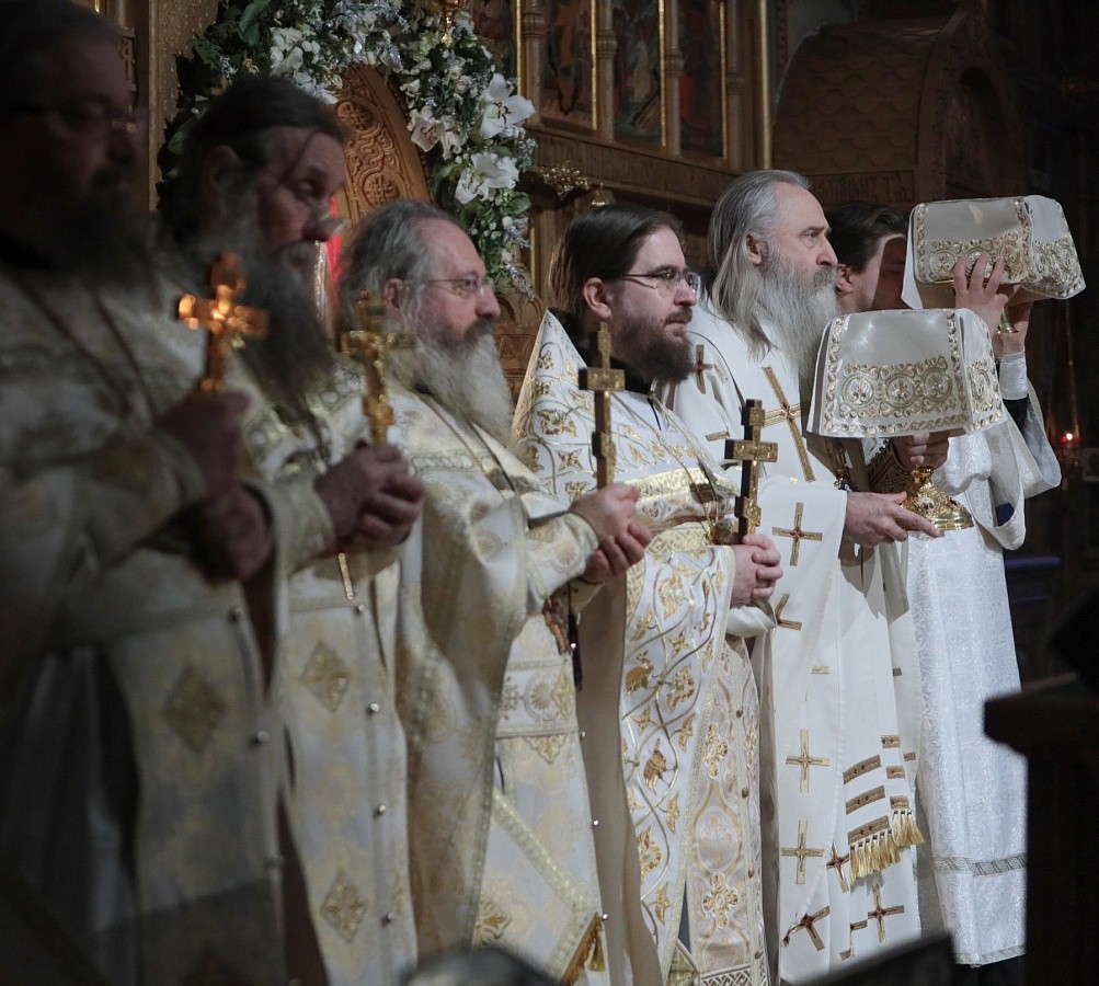 Диаконское служение совершали диакон Иоанн Афанасьев, клирик Троице-Сергиевой лавры; диакон Даниил Нагорный, клирик Московского Троицкого подворья Свято-Троицкой Сергиевой лавры, и диакон Стефан Ковальчук.