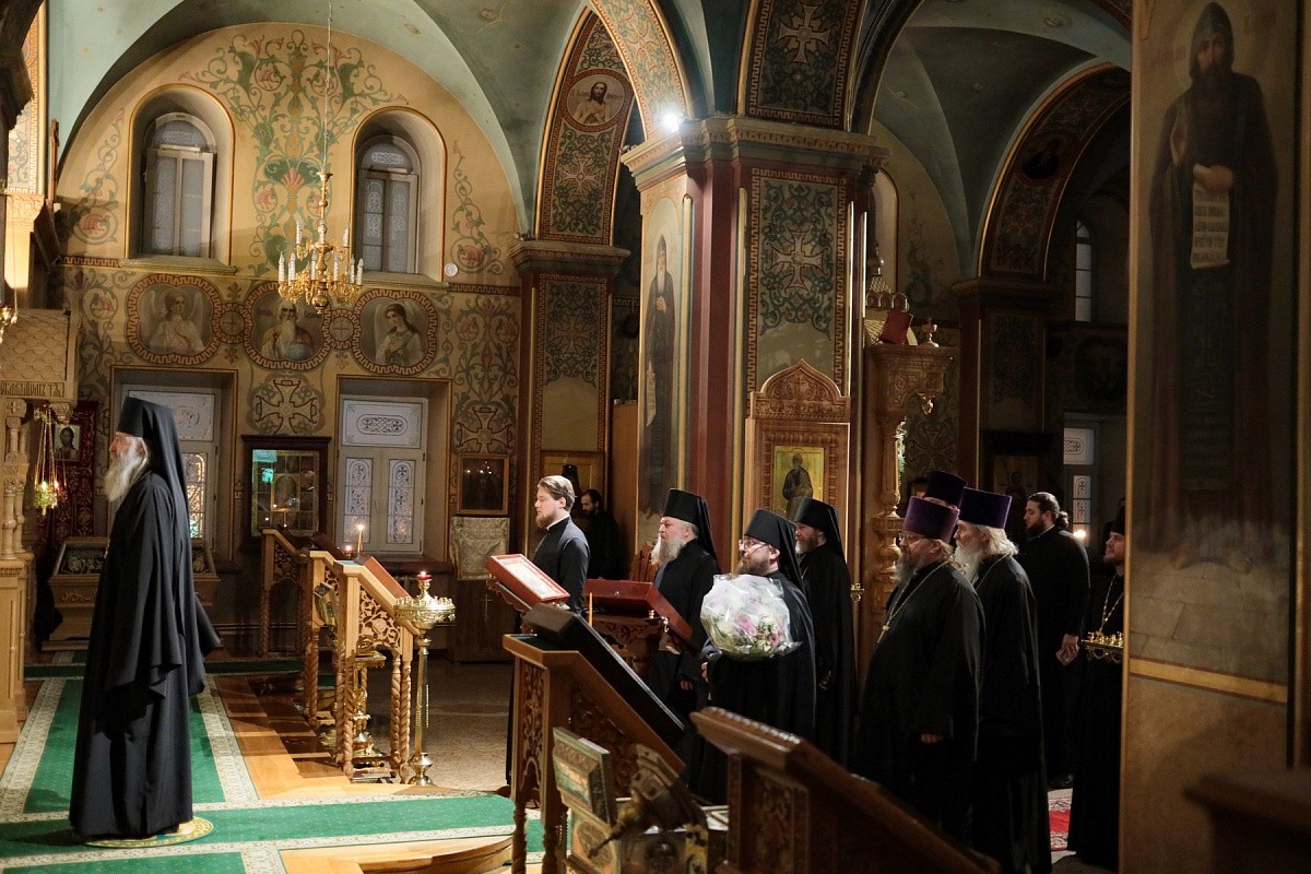 В завершение архиепископ Феогност совместно с епископом Троицким Панкратием, наместником Спасо-Преображенского Валаамского ставропигиального мужского монастыря, провели собеседование с послушниками Валаамской обители, желающими принять иноческий постриг.