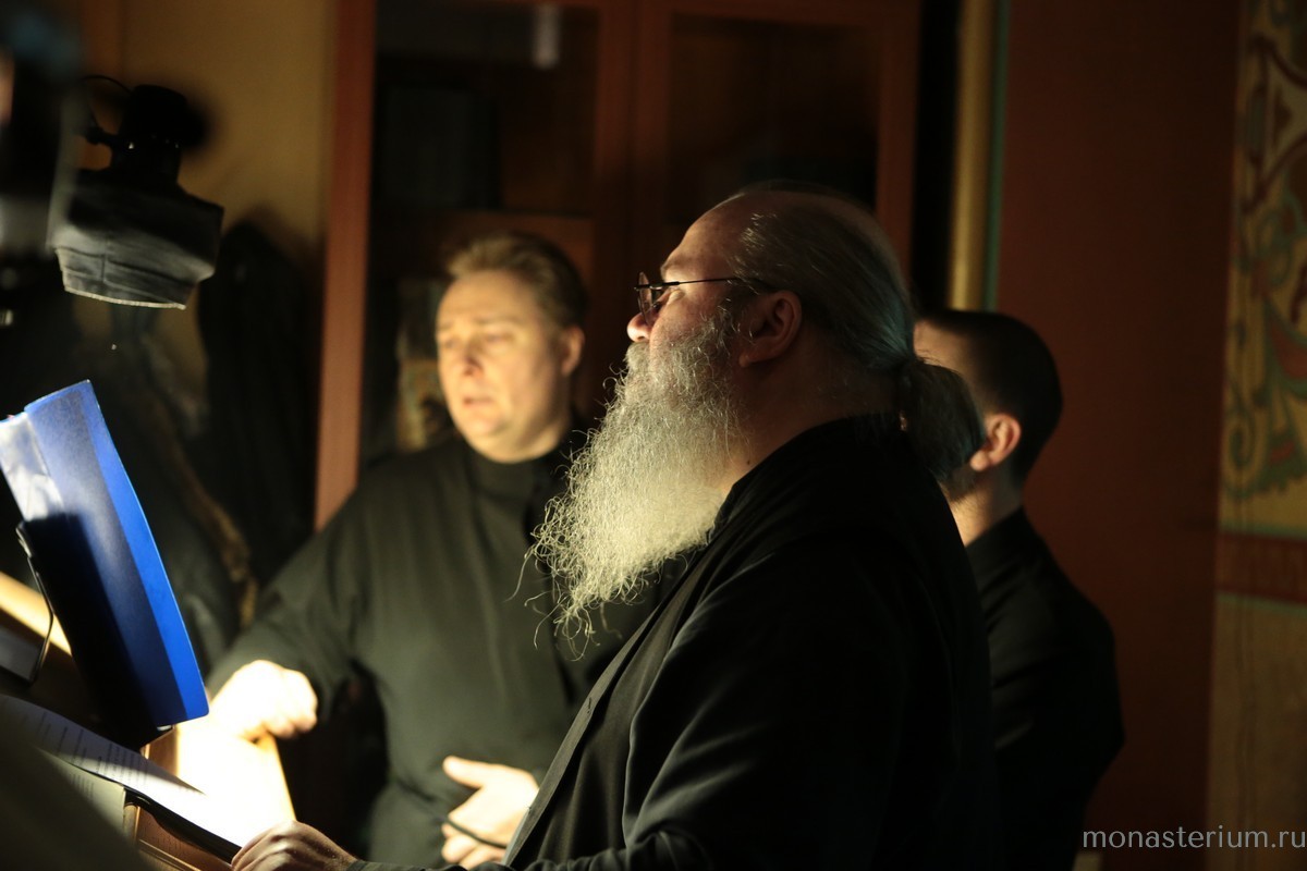 В этот день владыка Феогност совместно с наместником Спасо-Преображенского Валаамского ставропигиального мужского монастыря епископом Троицким Панкратием и игуменией Иулианией провел собеседование с восемнадцатью послушниками Валаамской обители и подворья, а также сестрами Московского подворья Свято-Успенского Пюхтицкого ставропигиального женского монастыря, желающими принять иноческий постриг.
