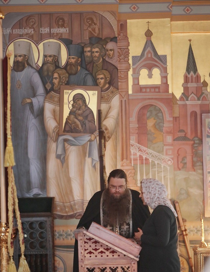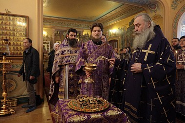 По окончании Литургии началась вечерня с чтением канона вмч. Феодору Тирону, после чего архиепископ Феогност совершил освящение колива.