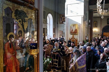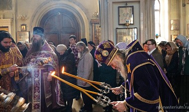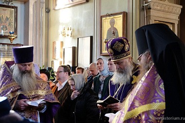 В этот день Литургию Преждеосвященных Даров в обители совершил председатель Синодального отдела по монастырям и монашеству, наместник Свято-Троицкой Сергиевой лавры архиепископ Сергиево-Посадский Феогност.