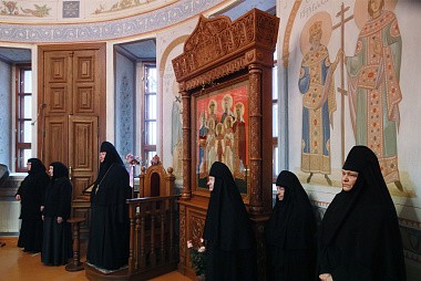 Песнопения исполнил монастырский хор под управлением инокини Нонны (Пушкиной).