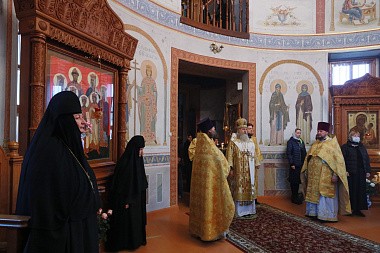 Его Высокопреосвященству сослужило духовенство монастыря.