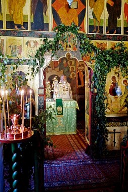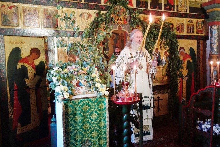 В приделе Сошествия Святого Духа на апостолов молились настоятельница монастыря игумения Викторина (Перминова) с сестрами и прихожане обители.
