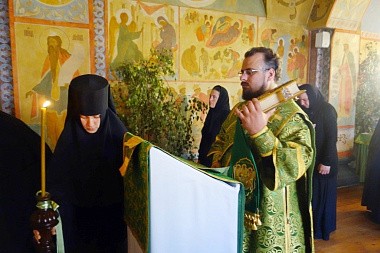 Его Высокопреосвященству сослужило монастырское духовенство.