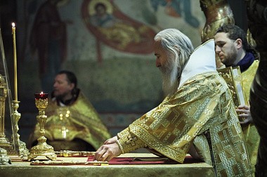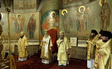 Его Высокопреосвященству сослужили епископ Екатеринбургский и Верхотурский Евгений, епископ Сергиево-Посадский Фома, наместник Свято-Троицкой Сергиевой лавры, благочинный Троице-Сергиевой лавры архимандрит Стефан (Тараканов), братия обители в священном сане.