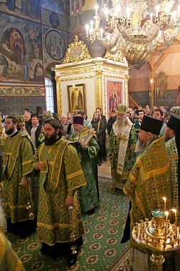 В этот день Божественную литургию в Успенском соборе монастыря возглавил архиепископ Каширский Феогност, председатель Синодального отдела по монастырям и монашеству.