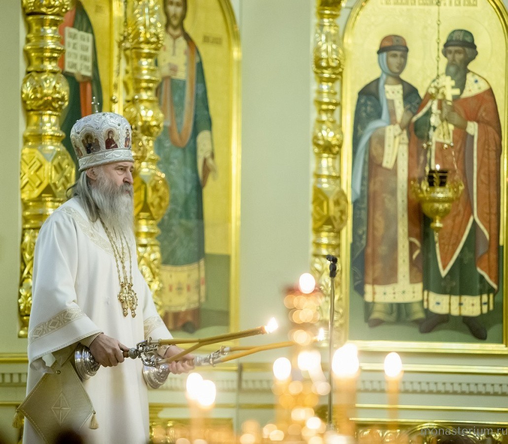 Его Высокопреосвященству в Вознесенском храме обители сослужило духовенство монастыря и клирики обители преподобного Сергия.