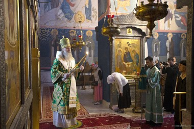Его Высокопреосвященству сослужили заместитель председателя Синодального отдела по монастырям и монашеству, настоятель Московского подворья Троице-Сергиевой лавры архимандрит Стефан (Тараканов), наместник Николо-Угрешского ставропигиального мужского монастыря игумен Варфоломей (Петров), духовенство Угрешской обители.