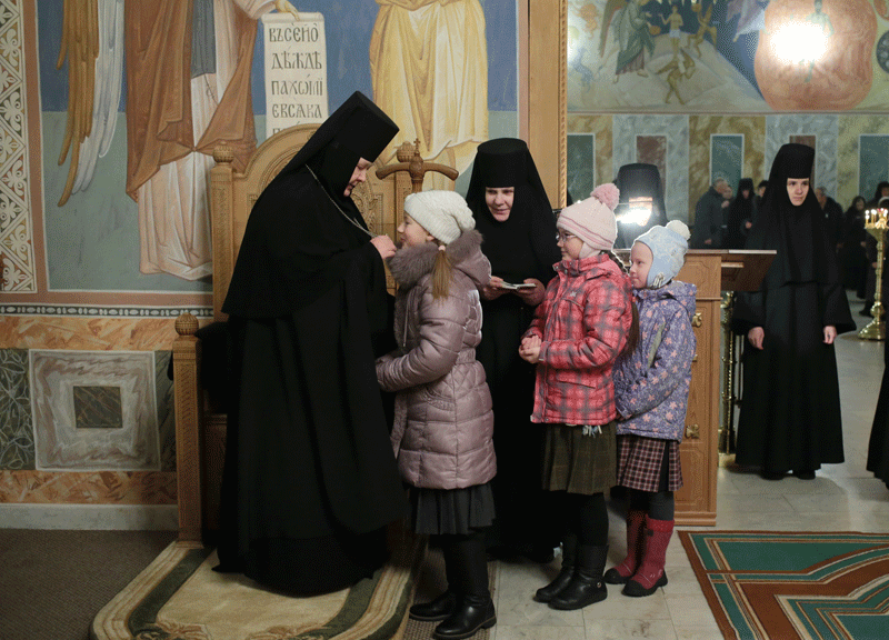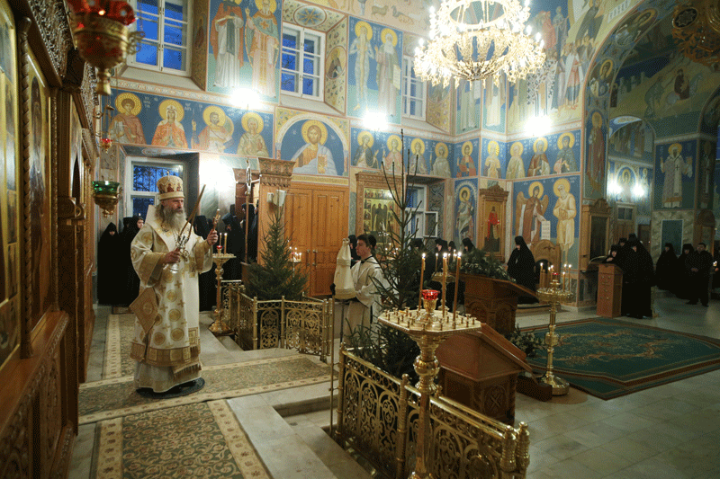 По окончании богослужения Владыка Феогност поздравил настоятельницу обители игумению Олимпиаду (Баранову) с сестрами и воспитанницами пансиона и всех присутствующих с праздником Рождества Христова и обратился к молящимся с архипастырским словом: