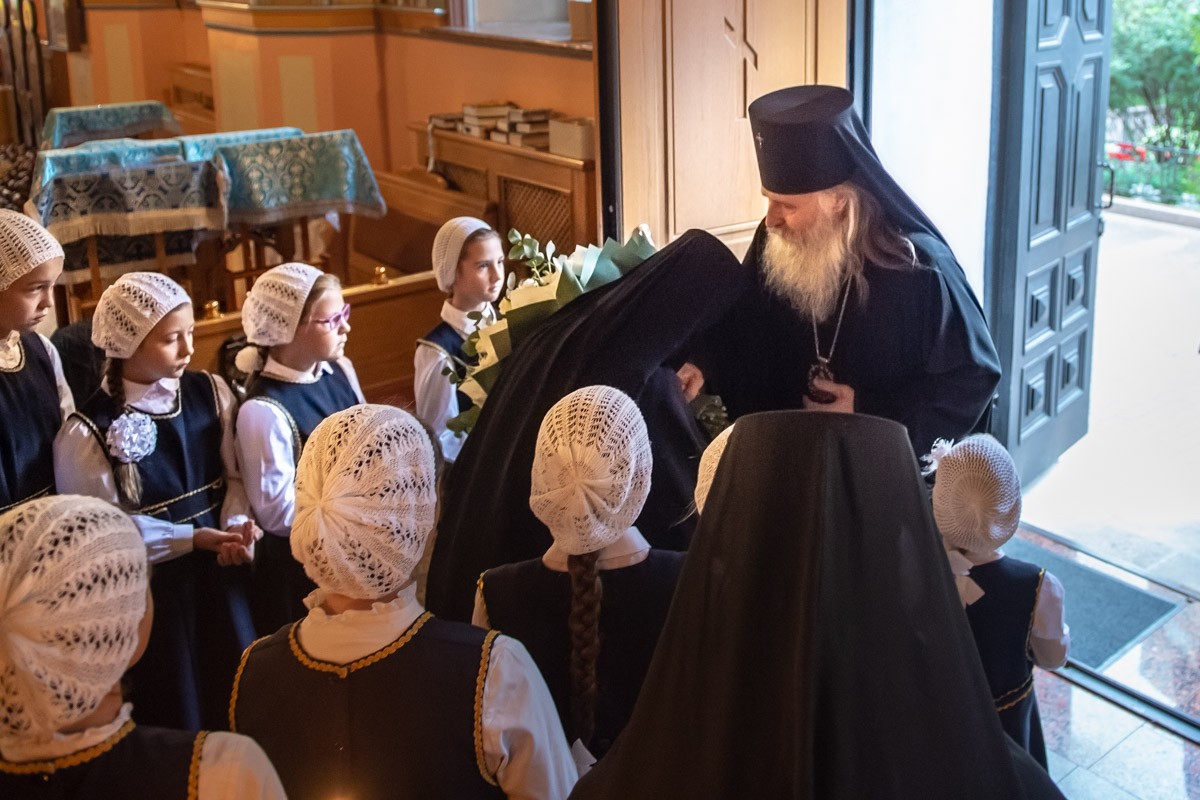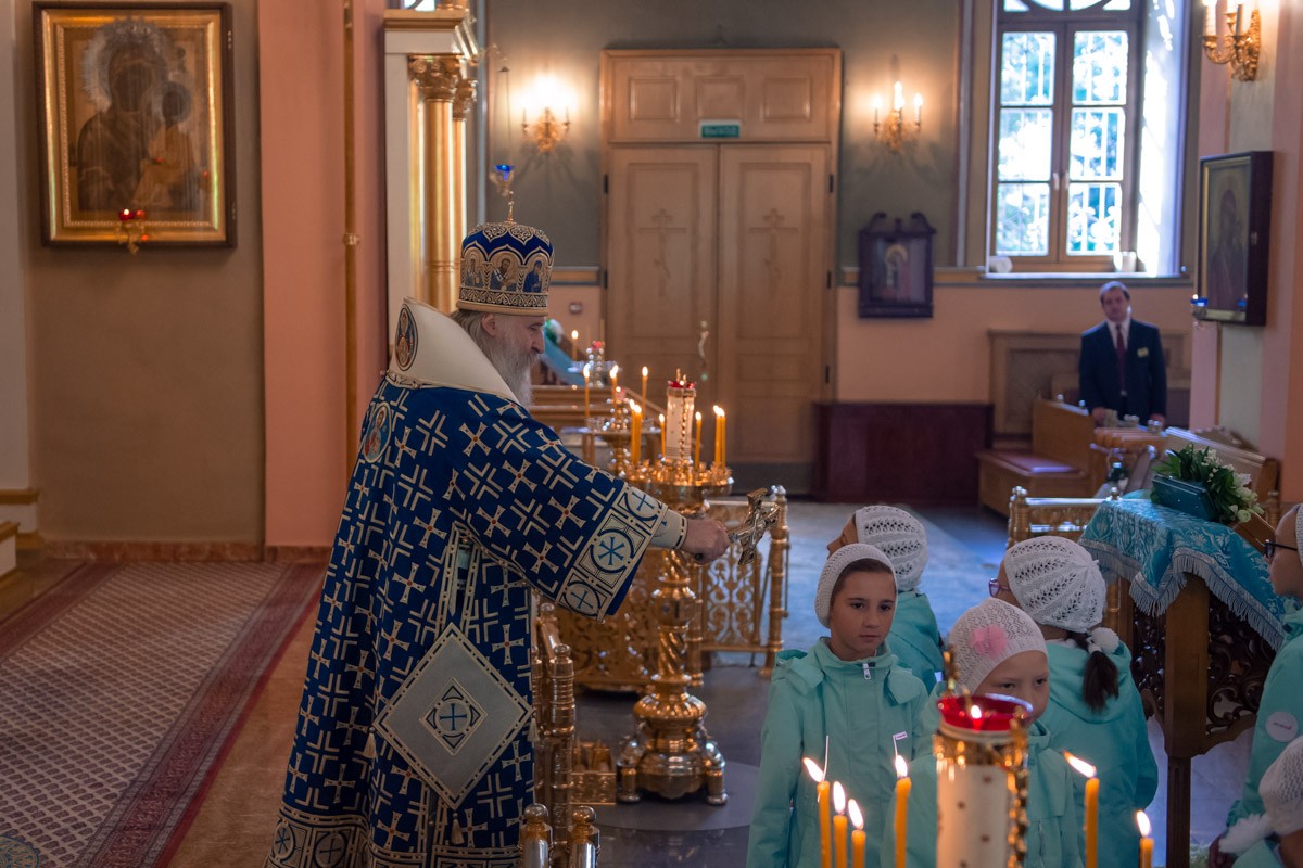 За Божественной литургией Высокопреосвященнейшему владыке сослужили заместитель председателя Синодального отдела по монастырям и монашеству, настоятель Московского подворья Троице-Сергиевой лавры архимандрит Стефан (Тараканов), клирик Покровского Хотькова ставропигиального женского монастыря протоиерей Николай Ляхов, клирики Покровской обители.