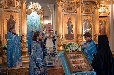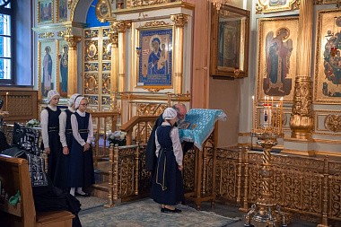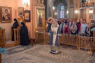 Настоятельница Покровского монастыря игумения Феофания, сестры обители, воспитанницы детского приюта при Покровском монастыре молились за Божественной литургией и причащались Святых Христовых Тайн. На богослужении также молитвенно присутствовали прихожане обители и паломники.