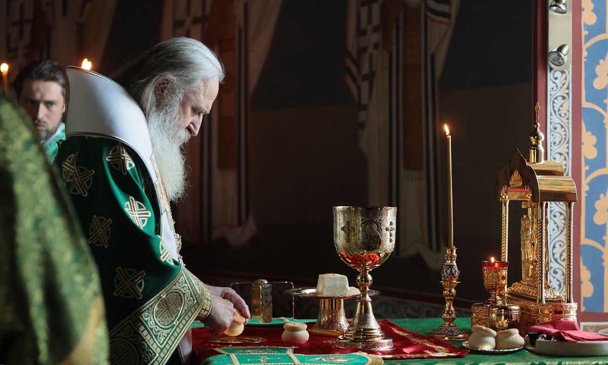 По окончании богослужения владыка произнес проповедь о том, как должно приготовлять сердце к принятию Святого Духа, начиная с исполнения первой заповеди евангельских блаженств: «Блаженны нищие духом, ибо их есть Царство Небесное».