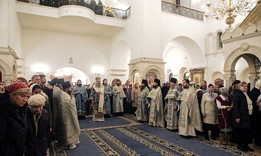 Его Высокопреосвященству сослужили: Заместитель Председателя Синодального отдела по монастырям и монашеству архимандрит Стефан (Тараканов); наместник Воскресенского Ново-Иерусалимского ставропигиального мужского монастыря игумен Феофилакт (Безукладников); наместник Высоко-Петровского ставропигиального мужского монастыря игумен Петр (Еремеев); наместник Николо-Угрешского ставропигиального мужского монастыря игумен Варфоломей (Петров); настоятель храма Живоначальной Троицы на Грязех протоиерей Иоанн (Каледа).