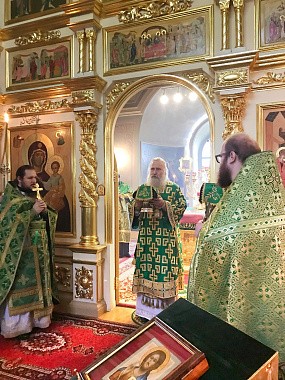 Торжественное богослужение возглавил архиепископ Каширский Феогност. Его Высокопреосвященству сослужили клирики обителя.