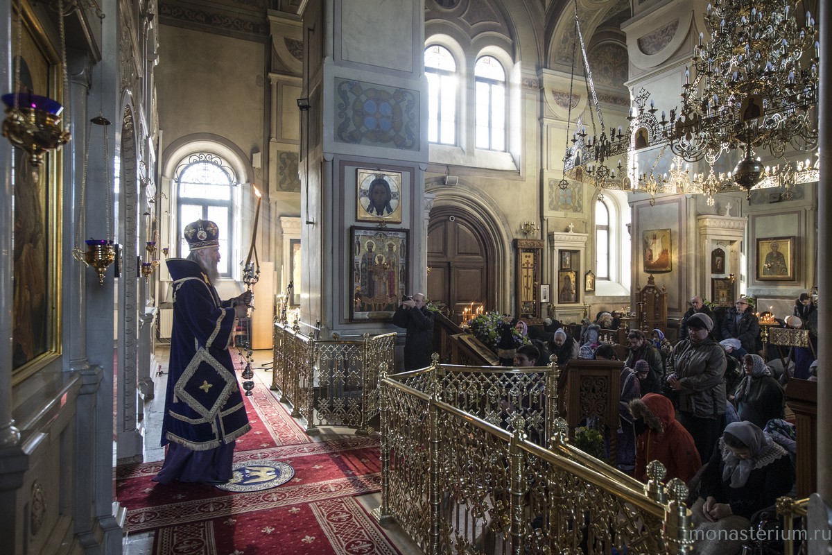 В этот день вечерню и Литургию Преждеосвященных Даров в монастыре возглавил председатель Синодального отдела по монастырям и монашеству, наместник Свято-Троицкой Сергиевой лавры архиепископ Сергиево-Посадский Феогност.