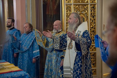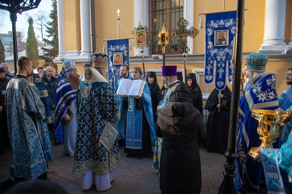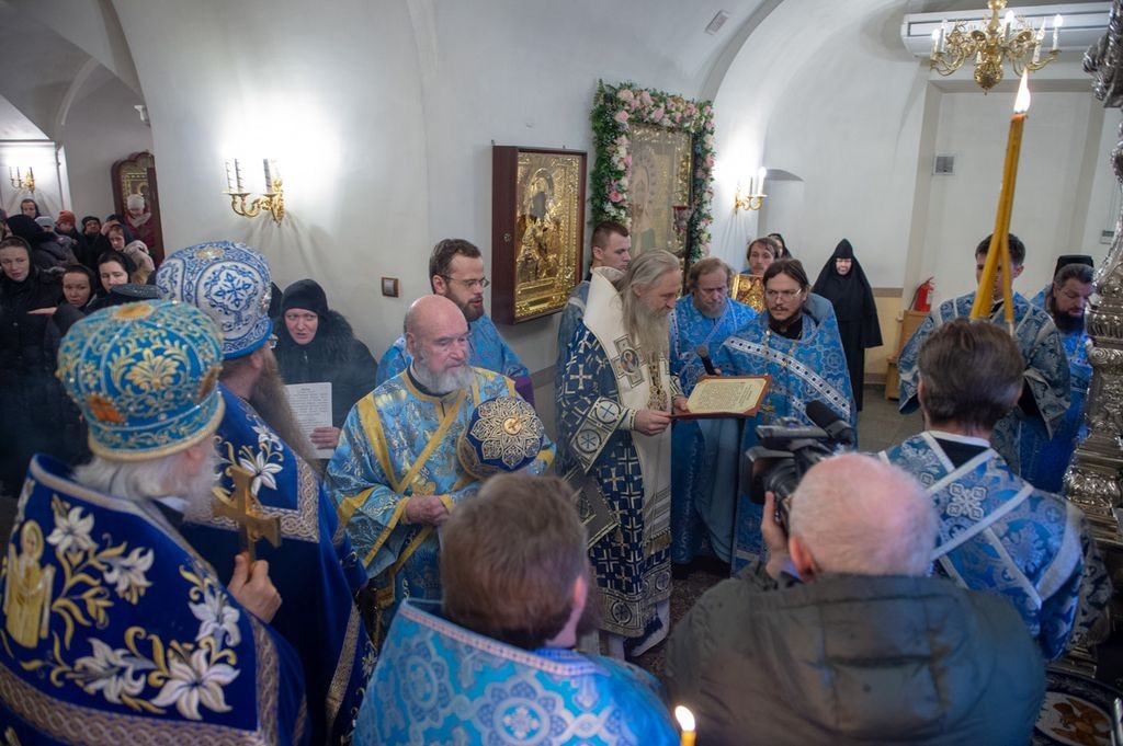 Его Высокопреосвященству сослужили: заместитель председателя Синодального отдела по монастырям и монашеству, настоятель Московского подворья Троице-Сергиевой лавры архимандрит Стефан (Тараканов); секретарь Святейшего Патриарха Московского и всея Руси по городу Москве, благочинный Центрального округа Москвы протопресвитер Владимир Диваков; благочинный Покровского благочиния Москвы протоиерей Александр Абрамов и клирики обители.