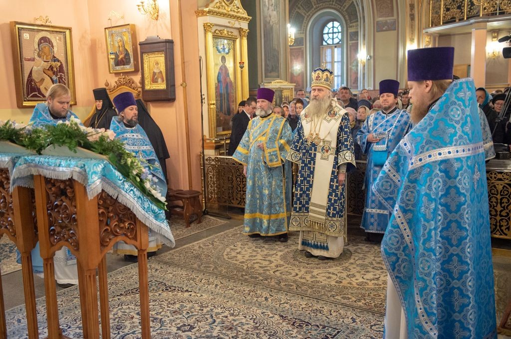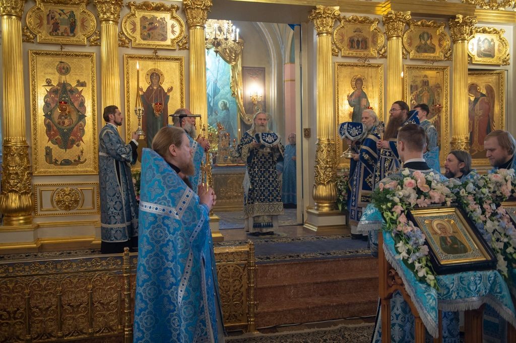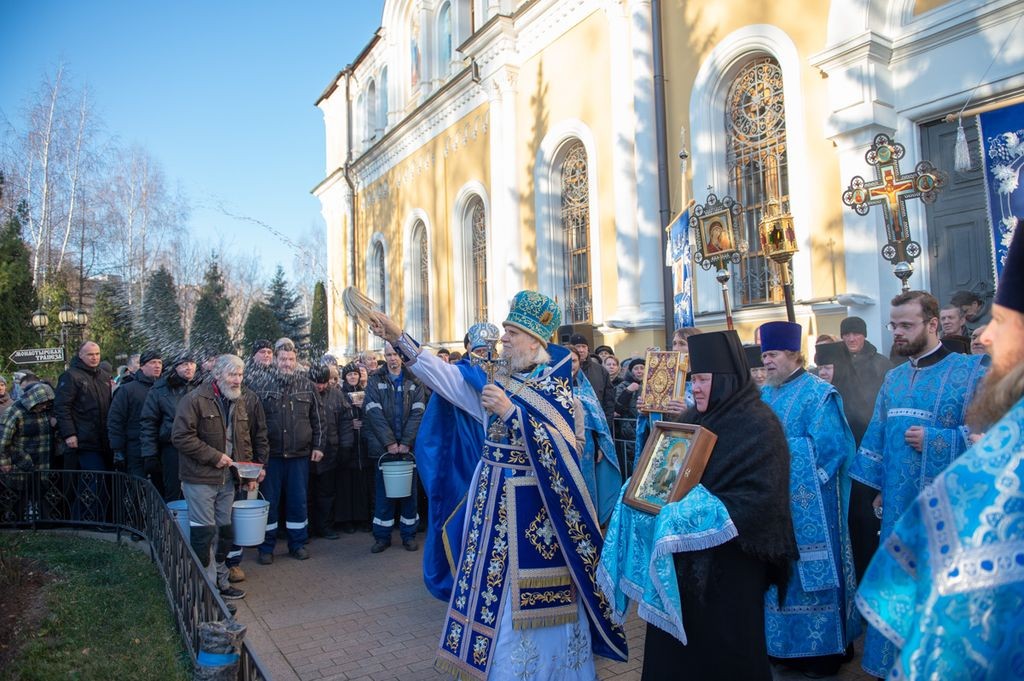 22 ноября 2019 года, в день рождения и тезоименитства святой праведной блаженной старицы Матроны Московской, викарий Святейшего Патриарха Московского и всея Руси, председатель Синодального отдела по монастырям и монашеству архиепископ Каширский Феогност возглавил Божественную литургию в храме Воскресения Словущего Покровского ставропигиального женского монастыря.