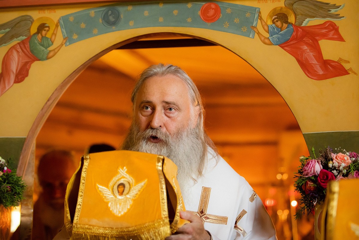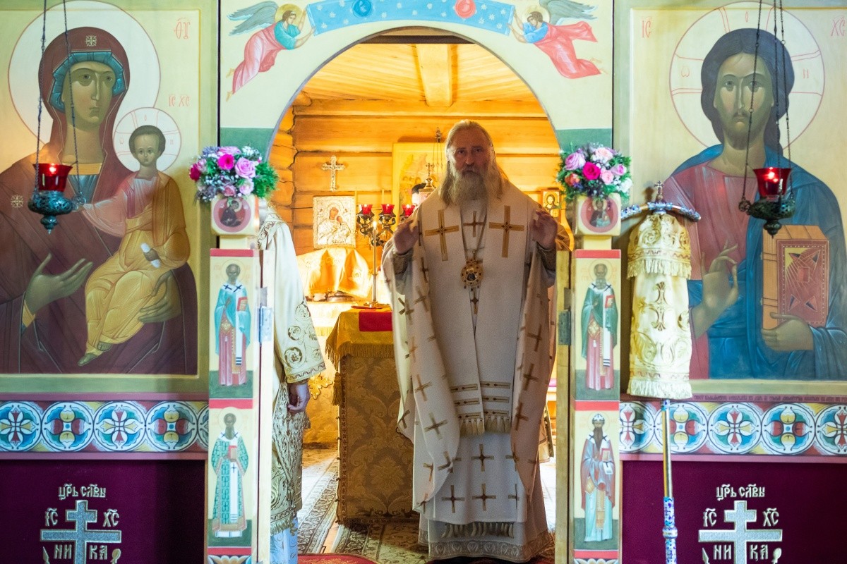 Его Высокопреосвященству сослужил игумен Валаамского монастыря епископ Троицкий Панкратий и братия в священном сане.