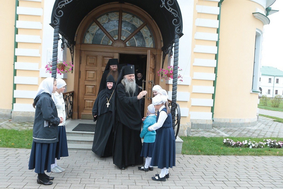 Затем владыка Феогност от имени Святейшего Патриарха Московского и вся Руси Кирилла поздравил настоятельницу монастыря игумению Марию (Солодовникову) и сестер с днем основания обители, пожелав, чтобы их труды всегда были во славу Божию.