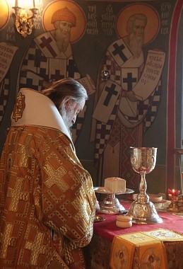 Его Высокопреосвященству сослужили наместник Высоко-Петровского монастыря игумен Петр (Еремеев), братия обители в священном сане и клирики города Москвы.