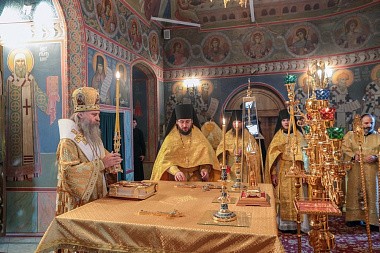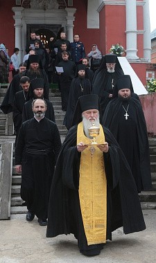 Перед началом богослужения по благословению Святейшего Патриарха Кирилла в монастырь доставили ковчег с частицами мощей равноапостольных великого князя Владимира и великой княгини Ольги. Ковчег будет пребывать в Сергиевском храме монастыря на протяжении всех дней празднования престольного торжества.