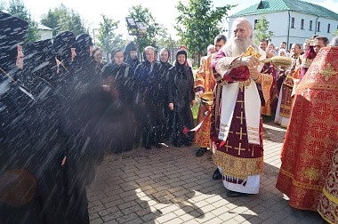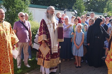 По заамвонной молитве владыка Феогност возглавил праздничный крестный ход, во время которого окропил всех богомольцев святой водой.