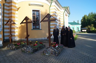 Накануне вечером в Борисоглебском приделе собором монастырского духовенства было отслужено торжественное всенощное бдение с литией и пением акафиста небесным покровителям обители.