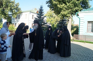 В ответном слове настоятельница монастыря игумения Мария (Солодовникова) выразила благодарность владыке Феогносту за поздравления, совершенное праздничное богослужение, вознесенные молитвы и преподнесла в дар Его Высокопреосвященству икону Божией Матери «Одигитрия» Смоленская.
