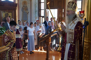 Затем архиепископ Феогност обратился к собравшимся с назидательным архипастырским словом и передал благословение и поздравление с престольным праздником от Святейшего Патриарха Московского и всея Руси Кирилла.