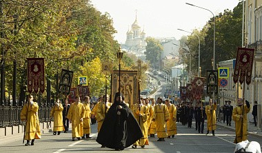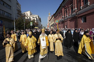 По окончании Литургии вокруг монастыря прошел традиционный Петровский крестный ход с чтимой иконой святителя Петра и другими святынями обители. Во время крестного хода архиепископ Каширский Феогност освятил образ Толгской иконы Божией Матери, написанный на фасаде Толгского храма.