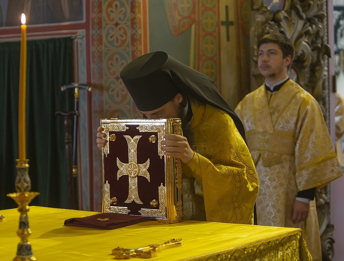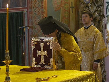 Проповедь по запричастном стихе произнес архимандрит Дорофей (Вечканов).