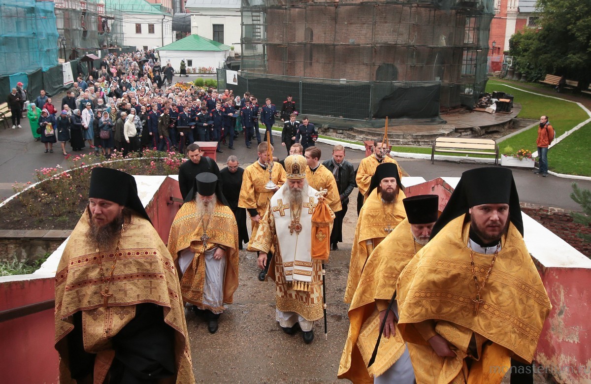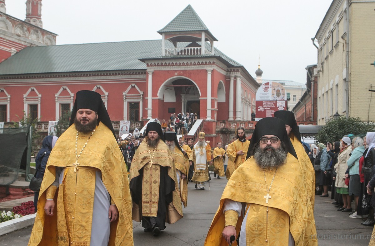 Накануне праздника, 5 сентябя, в монастыре было совершено всенощное бдение, которое возглавил наместник Высоко-Петровского ставропигиального мужского монастыря игумен Петр (Еремеев).