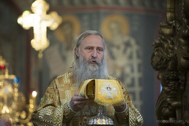 Его Высокопреподобию сослужили иерей Богдан Глюза, клирик Казанского храма г. Нерюнгри Якутской епархии, иеромонах Афанасий (Дерюгин), насельник Сретенского ставропигиального мужского монастыря, и духовенство обители.