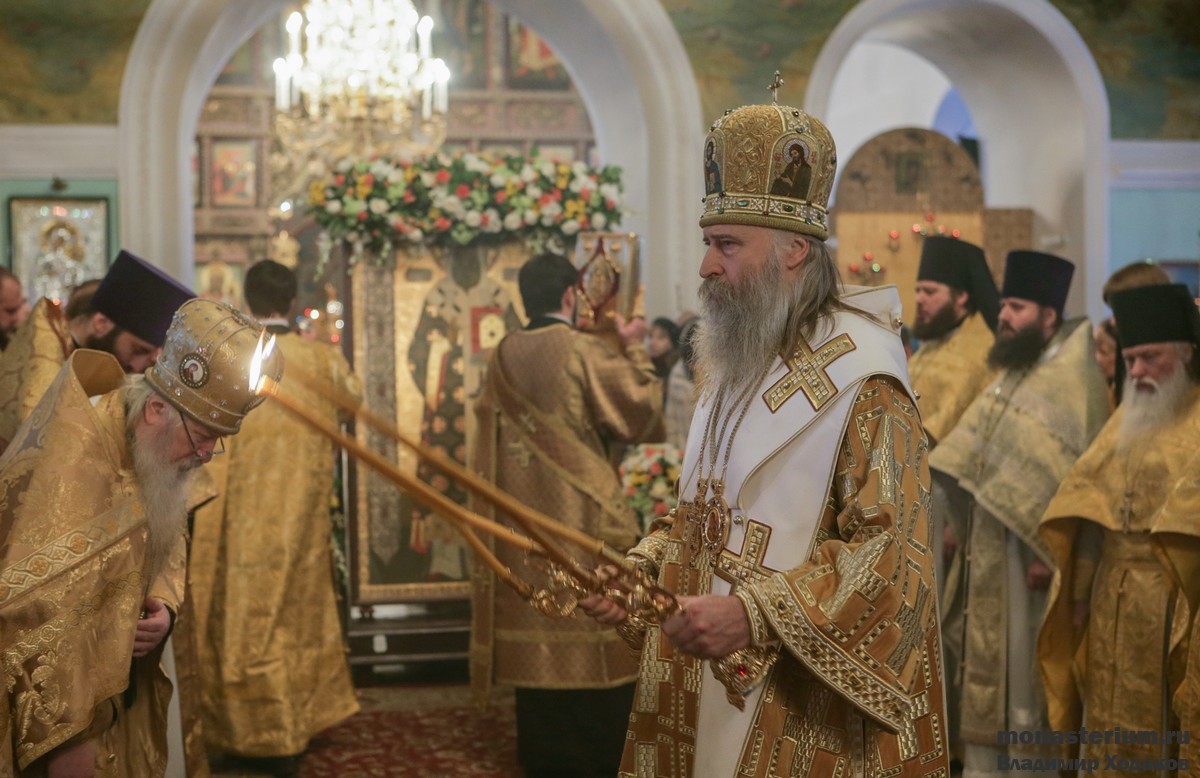 Затем праздничное богослужение в Сергиевском храме монастыря возглавил председатель Синодального отдела по монастырям и монашеству, наместник Троице-Сергиевой лавры архиепископ Сергиево-Посадский Феогност.